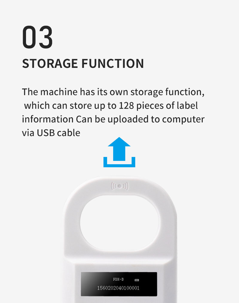 | READING/ WRITING RANGE | 2-12mm glass tube label > 5cm 30mm animal ear mark > 15cm (related to label performance) |